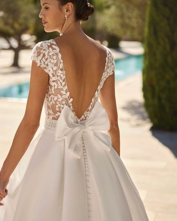 Quizás luego ›Vestido de novia largo dos piezas de volumen en raso con adorno de trenza, escote palabra de honor, tirantes extraíbles y cuello envolvente extraíble.